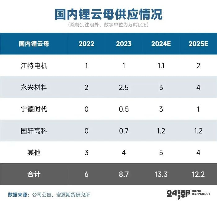 而锂云母项目上半年受到环保政策影响停产待工情况较多,三季度国内锂业巨头宁德时代宣布梘下窝矿以及其冶炼厂停产,对锂云母资源供给产生一定扰动。整体来看,2024年我国云母提锂资源实现了增长,锂云母与锂辉石合计预计贡献16.4万吨LCE左右。