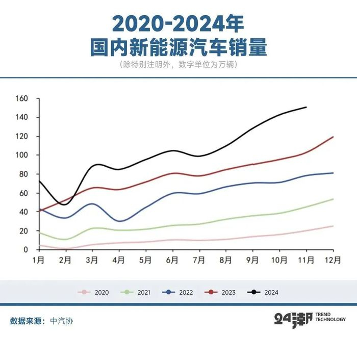 EVTank数据显示,2024年全球新能源汽车销量达到1,823.6万辆,同比增长24.4%。2024年中国新能源汽车销量达到1,286.6万辆,同比增长35.5%,占全球销量比重由2023年64.8%提升至70.5%,中国以旧换新政策效果远超预期,叠加各类车型不断升级出新以及车价降低,带动全球EV渗透率持续提升。