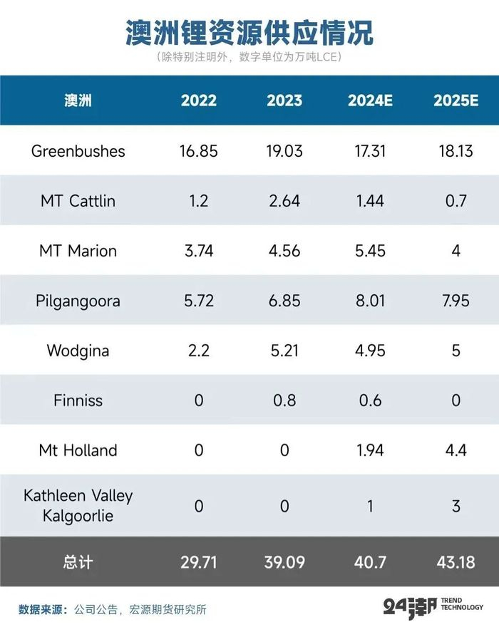 2024年成熟锂矿项目的稳定增长基本印证了市场对锂资源供给宽松的预期,但锂价持续下跌使得澳矿企业开始调整策略,通过主动停减产来应对市场压力。