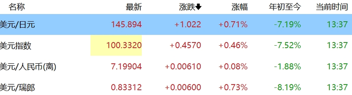 美元兑日元、瑞郎等避险货币走强,而黄金则出现抛售,现货黄金一度跌至每盎司3262.99美元的一周低点。