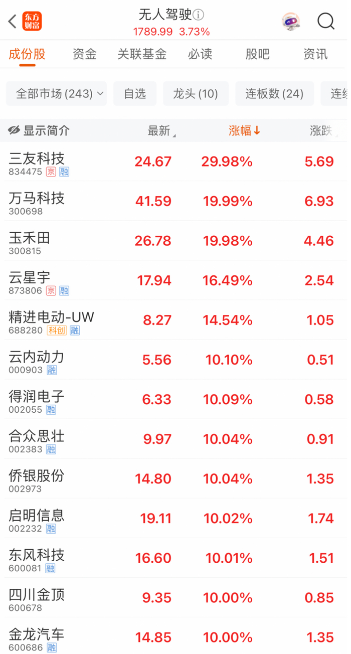 有分析称,近一段时间以来,无人驾驶赛道迎来多重利好催化,产业链的最新进展引爆市场情绪。