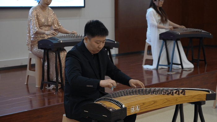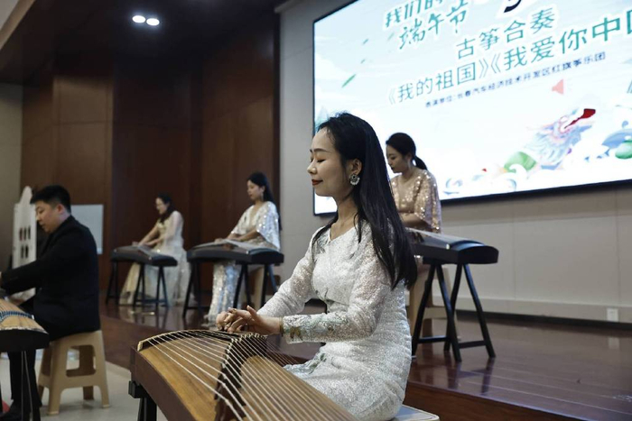 传统竞技之余,自然少不了传统音律的陪伴,来自汽开区红旗筝乐团的表演者们合奏了《我的祖国》《我爱你中国》,铮铮琴韵中,诉说着华夏子孙绵绵的爱国之情。