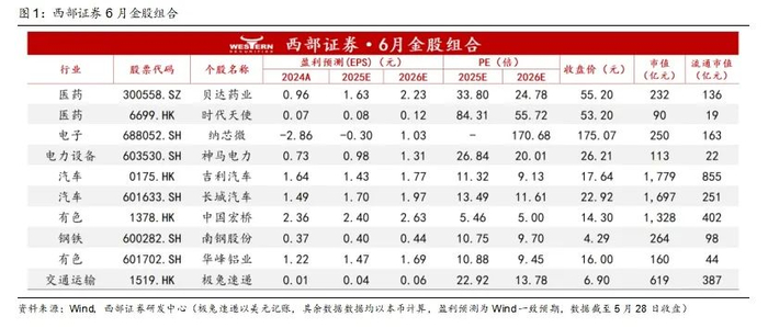 【西部研究】6月金股组合