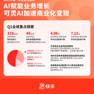 快手发布2025年Q1财报:营收326亿元 AI驱动多业务增长