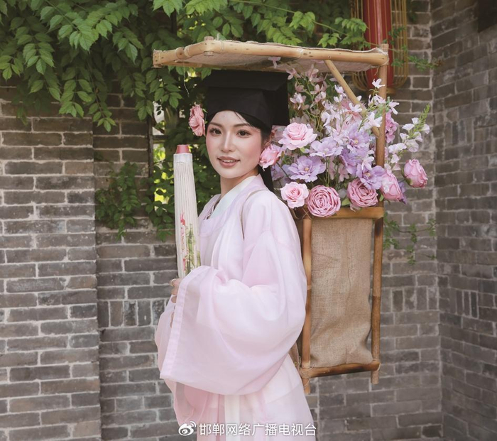 当最后一句诗韵消散在空气中,竞技余热未散,巷道深处已响起“叮铃哐啷”的竹筐轻晃声,反串出演的卢生化身赵国闪送侠,身着粉色交领汉服,肩背鲜花箩筐冲破人潮;这边,桑树林间,骤然亮起柔焦补光灯,采桑女罗敷轻旋襦裙亮相,鬓间玉簪竟随互动热度变换色彩;那边,话音未落,狡黠灵动的哪吒,摇晃着乾坤圈穿越人群亮眼登场……