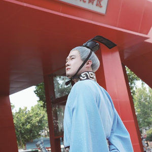 “家人们呐——”一声幽怨长吟惊起檐角铜铃,青石巷口转出一个峨冠博带的身影。屈原甩着三米青蓝色广袖踱步而来,楚式曲裾深衣上绣着粽叶纹样,活脱脱从《天问》手稿里走出的二次元文豪。