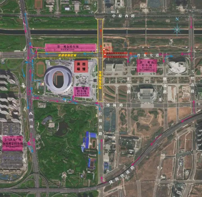 免费停车场启用时间是5月31日(周六)、6月2日(周一)两天每天16:00至23:00,这两个时间段内在郑州奥体中心参与活动的观众,可以通过高德地图导航至两个停车场免费停车,确保有序出入,安全出行。如果以上两个停车场停满车辆,请按照交警指挥前往其他停车场有序停车。