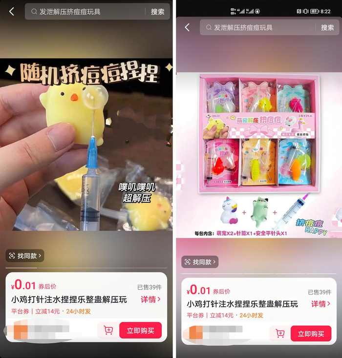 这是在某电商平台,记者发现有店铺销售含有注射器的“捏捏乐”玩具。在长春市某小学门口