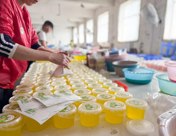 5月27日,吉林省某市一家文体用品有限公司工人在生产“水晶泥”。