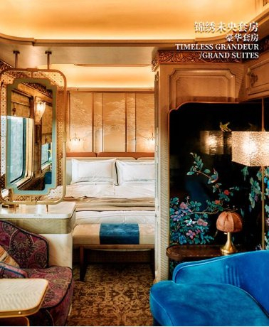 从官网图片来看,这些专列无论是公共空间还是客房,内部装修都极具富丽堂皇的气质,值得一提的是,充满“老钱风”奢华感的车厢也是由绿皮火车改造而来的。