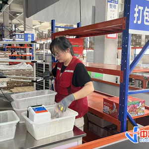 中新经纬5月29日电 (魏薇)近日,在江苏益和宠物用品有限公司(下称益和宠物)的智能电商云仓发货区,中新经纬看到,工人们正在对照订单分拣货品,并将商品打包装好,通过一条条传送带,商品直接送往各个快递公司的送货车发货。