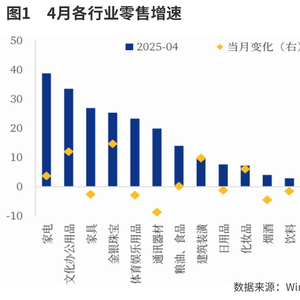 其一,消费品以旧换新政策继续显效,相关商品消费需求不断释放。4月限额以上单位家用电器和音像器材类、文化办公用品类、家具类、通讯器材类零售额同比分别增长38.8%、33.5%、26.9%和19.9%,这些行业合计拉动4月社会消费品零售总额增长1.4个百分点。