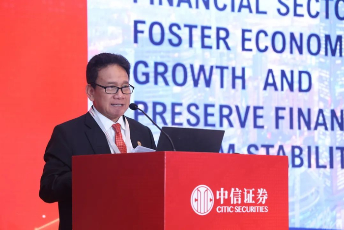 印度尼西亚金融服务管理局委员会副主席Mirza Adityaswara就印度尼西亚经济、资本市场及政策展望等方面发表了主旨演讲。他表示,从宏观经济来看,2025年第一季度印尼GDP同比增长4.87%,整体增长仍具韧性,主要受益于内需驱动的增长结构,家庭消费占比逾54%、增速稳定,对美出口占比较低也在当前贸易战背景下形成有效缓冲。