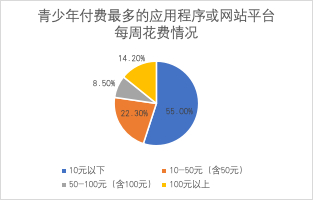 青少年在网络平台的每周花费情况。