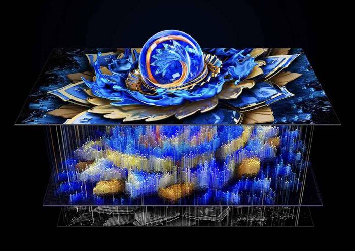 首先,TCL 将曾经的蓝宝石高光晶底、升级为了超能高光晶底,并搭配 ALD 原子级耐蚀工艺实现电视亮度与光效的大幅提升。相较行业的普通多芯 Mini LED 芯片,TCL 的聚核光芯亮度提升超过 50%,简单来说就是大幅提高了光源亮度。