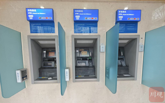 如在成都天府国际机场境外来宾支付服务中心,中国银行四川省分行布放了支持外卡的ATM、外币兑换机等自助机具,并设置了双语标识。