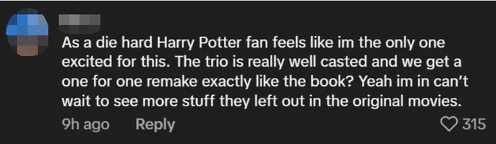 有些网友则表示尽管新演员阵容不错,但每当自己想到《哈利·波特》,脑海中浮现的依然是电影版本演员的样子。