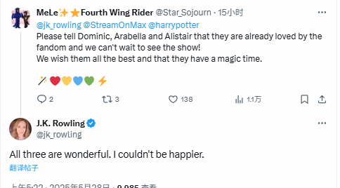 原著作者J.K.罗琳也表示了对新三人组人选的认可:“这三位太棒了,我非常开心。”