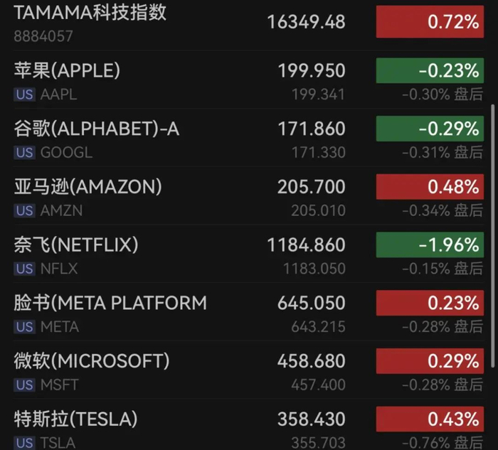科技股多数上涨