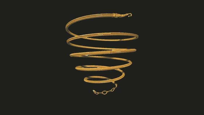 其中不得不提的是广东省博物馆的一件“镇馆之宝”,曾经登上央视《国家宝藏》的金器——一条具有西亚风格、长172厘米的金项饰,它在形制、长度、重量等方面,都在“南海Ⅰ号”出水金器中独一无二。其链身使用了方形八股编的技法,环状搭扣装饰有细金珠,带钩和搭扣存在轻微使用痕迹——它是船货还是个人使用的金饰?其主人是否来自西亚地区?更多答案有待进一步研究。