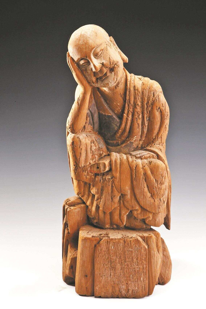 众所周知,唐代高僧惠能(638-713年)是禅宗南宗创始人,佛教史上称为禅宗六祖。惠能弘法的广东韶关南华禅寺,被誉为“禅宗祖庭”之一。广东因此在中国佛教史上占有重要的一席之地。广东省博物馆现藏有10尊原供奉于南华寺的宋代木雕罗汉像,皆为一级珍贵文物。这些罗汉像不仅是难得的宋代木雕艺术珍品,也是同时期佛教造像的鉴定标准器,具有重要的研究价值。根据像座铭文可知,这批罗汉像至迟从北宋庆历五年(1045年)开始雕造,持续约四年。其后部分罗汉像又经过明代重新装饰。