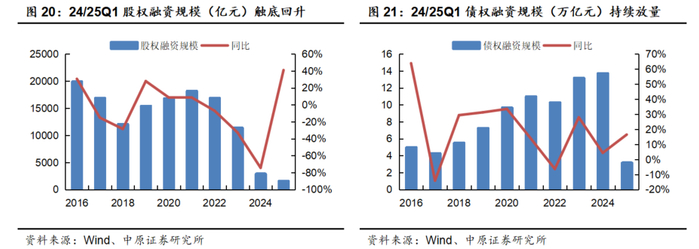 2.3.1. 24/25Q1股权融资规模显著回落后企稳回升,债权融资规模持续放量