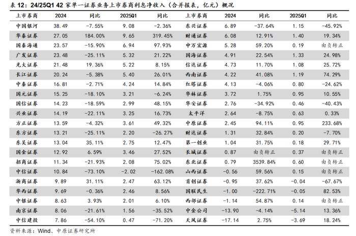 2.5.4. 24/25Q1上市券商利息净收入由降转为明显回升