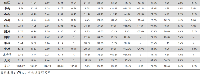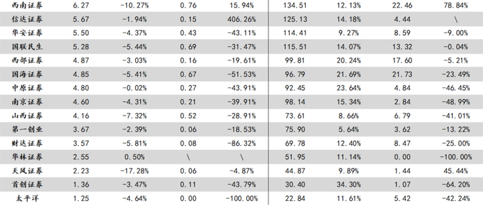 由于部分上市券商将期货子公司大宗商品贸易收入合并至报表中,本文仅对归母净利进行统计对比,以更为真实的体现上市券商盈利能力的变化。