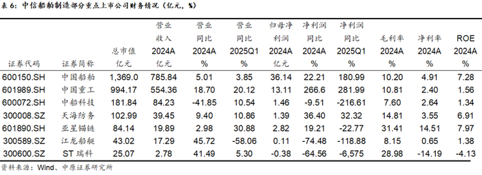 重点子公司财报:船舶制造板块重点企业财报有明显的改善,龙头中国船舶2024年实现归母净利润36.14亿,同比增长22.21%,2025Q1归母净利润同比增长180.99%。