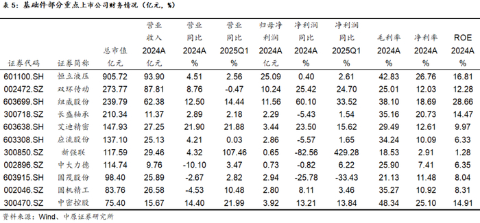 从毛利率、净利率情况来看,2024年报开普检测、思维列控均实现了37%以上的净利率,表现了很强的盈利能力,新天科技、速达股份、郑煤机、国机精工等企业净利率也在10%以上。2025Q1一拖股份、新强联毛利率、净利率有显著的提升。