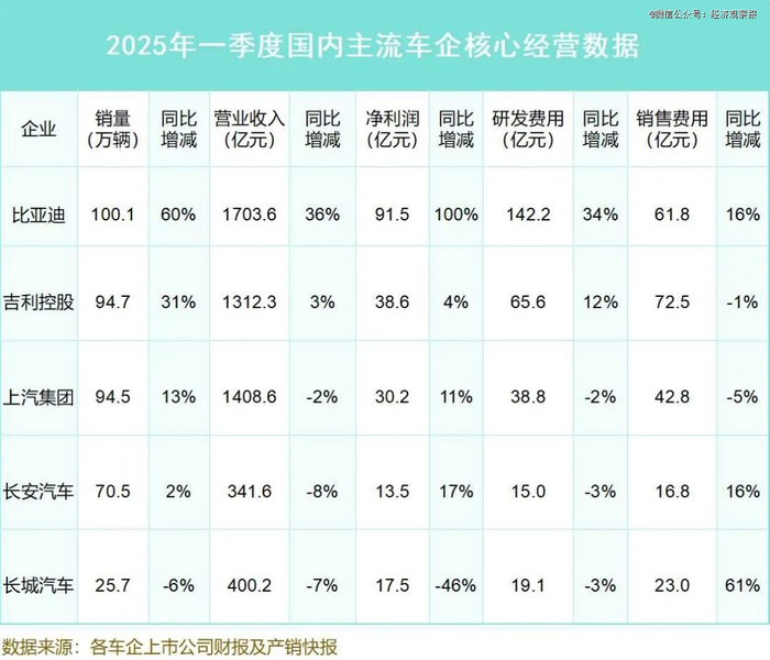 如果聚焦国内头部的车企来看,不难看出头部效应非常明显。高研发投入的企业往往能带来技术破局,在竞争洪流下依然维持销量的增长,同时促使其在营业收入和净利润上实现正增长。而仅重视营销、弱研发的企业经营情况则明显增长出现不同程度上的乏力。