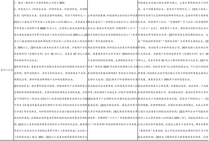 1) 发行人认定上,科技型企业主要以技术创新为核心,具备认定的科技创新称号,或已有科技贷款、科创板创业板上市支持,或有一定量发明专利或著作权,也可通过母公司发行;股权投资机构主要为符合条件的私募股权投资、创业投资、产业股权投资等机构及其母公司。