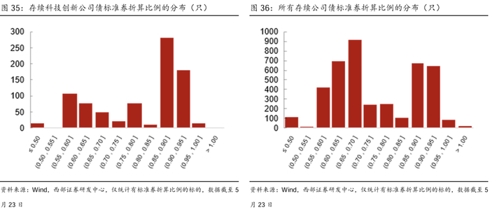 科技创新公司债标准券折算比例较交易所公司债整体更高,未来部分科创公司债可以通过信用保护工具成为合格受信用保护债券,从而获得质押式回购担保品资格。截至2025年5月23日的存量公司债数据,所有可质押公司债的标准券折算比例均值为0.75,所有可质押科技创新公司债的标准券折算比例均值为0.80,科技创新公司债的质押受到额外政策支持。另一方面,根据《中国证券登记结算有限责任公司受信用保护债券质押式回购管理暂行办法》(2022年修订版)与《中国证券登记结算有限责任公司债券通用质押式回购担保品资格及折算率管理业务指引》,部分科创公司债可以通过交易所创设的信用保护工具成为合格受信用保护债券,纳入到质押库中增强流动性。
