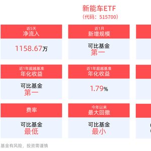 份额方面,新能车ETF近1周份额增长500.00万份,实现显著增长,新增份额位居可比基金1/2。
