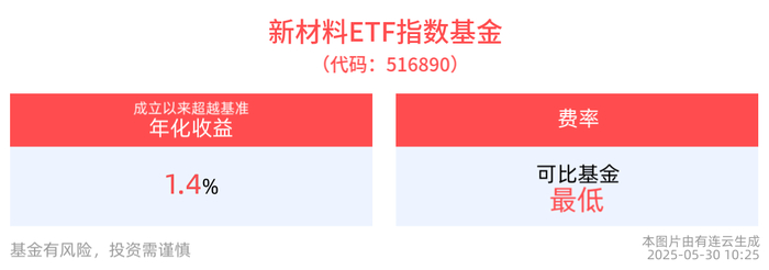 新材料ETF指数基金紧密跟踪中证新材料主题指数,中证新材料主题指数选取50只业务涉及先进钢铁、有色金属、化工、无机非金属等基础材料以及关键战略材料等新材料领域的上市公司证券作为指数样本,以反映新材料主题上市公司证券的整体表现。
