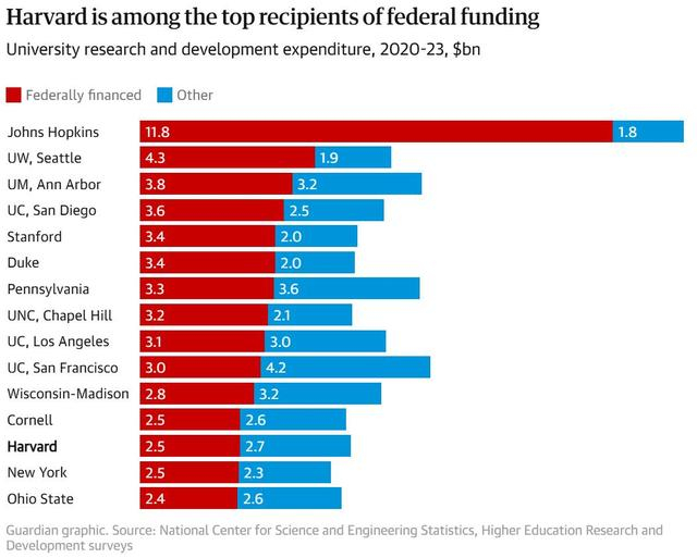 哈佛是一所私立大学,其资金来源中,有相当一部分来自联邦政府的科研资助、学生贷款计划与政策性教育项目。从生物医药到人工智能,许多哈佛实验室依赖国立卫生研究院(NIH)、国家科学基金会(NSF)等联邦拨款维持前沿研究,而本科生及研究生也大量依靠联邦提供的助学贷款和奖学金。