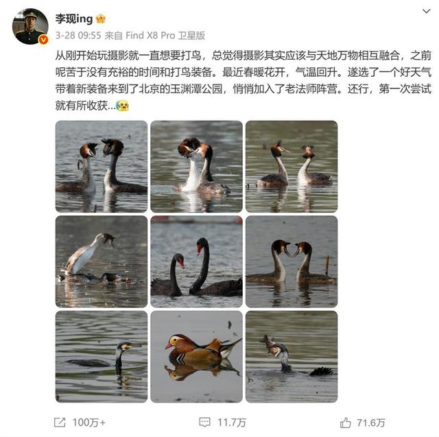 据了解,“李现拍鸟”并非第一次出现在公众视野了。此前,相关话题就多次被媒体报道。4月4日,生态环境部还专门发文称,喜欢摄影的当红演员李现,果然不负“花鸟使”之名,以一己之力带火了“玉渊潭打鸟”在内的N个话题,成为这个春季破圈的现象级讨论。