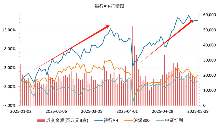 2025年开年至今,银行AH指数有两轮亮眼的上涨行情,大幅跑赢沪深300和中证红利指数,预计未来上涨空间仍然很大。因此,如果大家想持基过节的话,跟踪指数的银行ETF优选(517900)可能是最合适的。