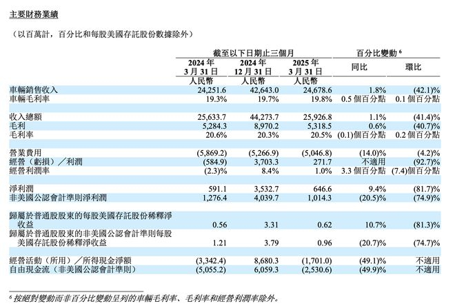 2025年第一季度理想汽车主要财务数据(图源:公告截图)