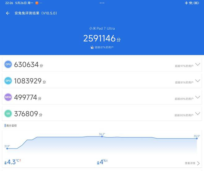 介绍了纸面上的配置,接下来我们先从跑分测试来看小米平板 7 Ultra 的实际性能表现。