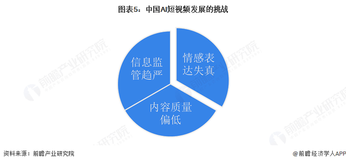 尽管AI技术在短视频领域中应用迅速扩展开来,但其发展面临仍面临新的挑战:在内容生产端,算法生成的情感表达存在明显失真,如AI合成的面部表情僵硬、语音语调机械化,导致用户难以建立真实的情感共鸣;技术门槛降低引发创作质量危机,海量低创模板化内容稀释了优质作品的传播空间。此外,内容监管更成为棘手难题,深度伪造技术让虚假信息难以溯源,算法推荐的“信息茧房”加剧了价值观扭曲风险。