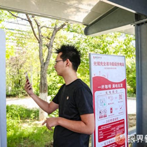 5月29日,在位于益民大厦附近的“城投秒充”光储充全液冷超充站,网约车司机刘伟扫码准备充电。记者米热扎提·木塔力甫摄