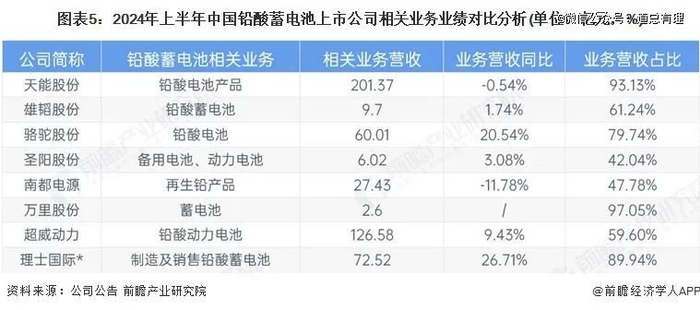 数据显示,2024年上半年,天能股份以201.37亿元的铅酸电池业务营收位居行业第 一,超威动力紧随其后,铅酸动力电池业务营收达126.58亿元。