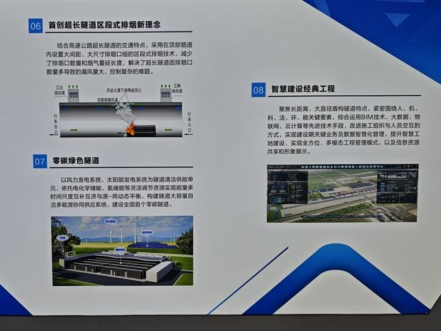“盾构段需要长距离穿越长江底淤泥质粉质黏土夹粉土、粉细砂复合地层等复杂地质带,最大埋深约75米,最高水压达7.5巴,具有超长距离、超大直径、超高水压、超大埋深、复杂工况等特点。”中铁十四局海太长江隧道项目总工程师游少强介绍,隧道建设初期,项目方汇集近60所高校、科研单位以及世界顶尖设计、咨询、施工、监理团队,推动一系列创新落地:首创救援车专用通道技术、首创盾构隧道管片DDCI新型连接构造、全预制盾构隧道内部结构、首创防火与结构一体化烟道板、首创新型烟道板牛腿结构、首创超长隧道区段式排烟新理念、全国首个零碳隧道、智慧建设经典工程。