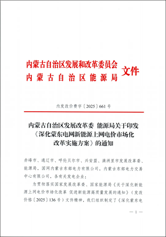 5月29日,内蒙古自治区发改委发布《关于印发深化蒙东电网新能源上网电价市场化改革实施方案》的通知(以下简称《方案》)。