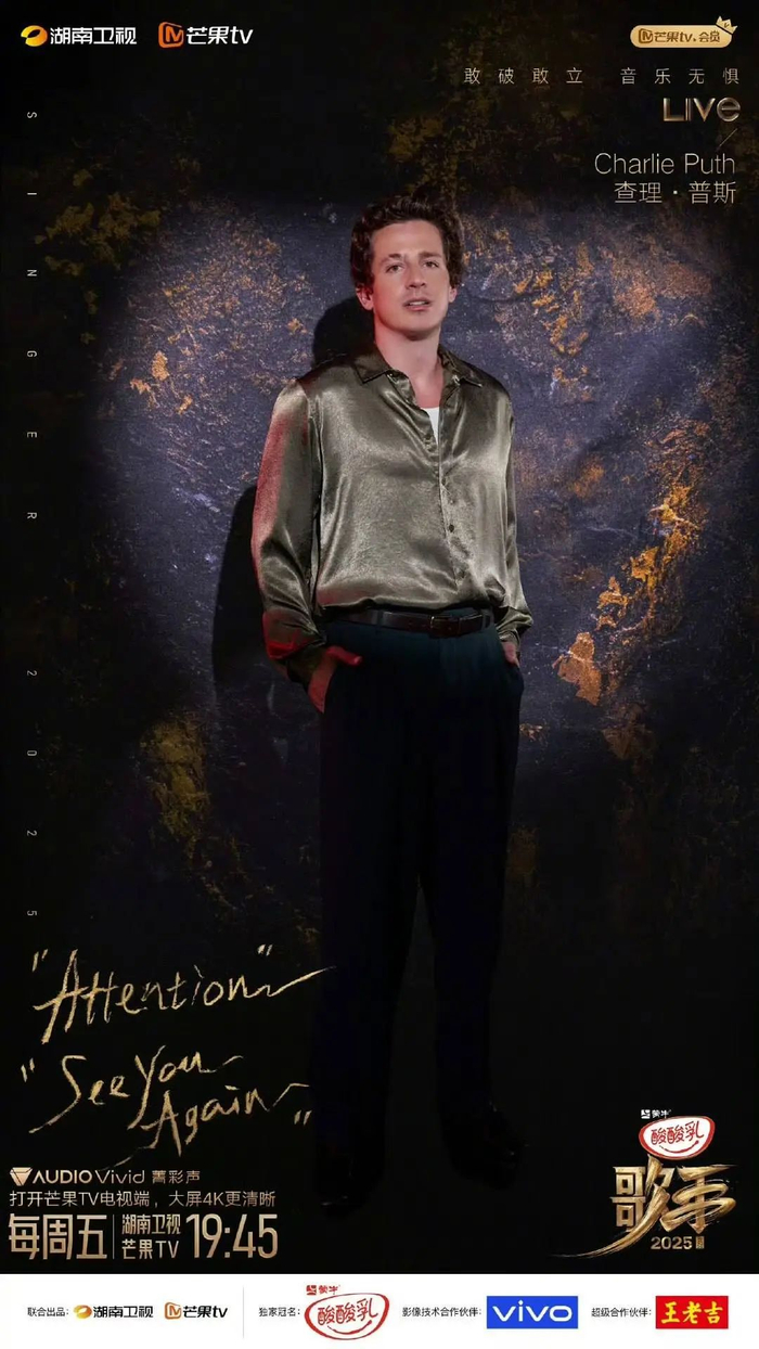 5月30日晚,《歌手2025》第三期将迎来“袭榜战”,美国流行乐歌手Charlie Puth查理·普斯惊喜袭榜。他将带来两首歌曲《Attention》《See You Again》,让人期待不已。