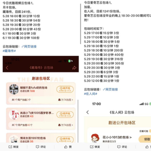 芒果引入云包场初期,芒果自制综艺《快乐的大人》开播,其主演沈月云包场了五百个座位,但权益仅限于观看《快乐的大人》第一期。而后芒果播出的《以爱为营》《花儿与少年》《披荆斩棘》等剧综都可以送出指定电视剧/综艺的指定集数的观看权益。当时的云包场,的确仅限于“单次包场”。