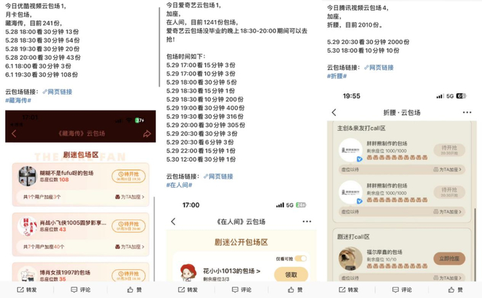 在社交平台上,已经出现了大批网友对云包场高度关注,并且表示有这样天上掉馅饼的好事,以后都不会再充值各大视频平台会员了,小茉就是其中之一。“现在随便一部剧都有包场,从几百份到几十万份都有,只要不停地有新剧上线,就会不停地有云包场出现,这种情况下谁还自己花钱,那不成了冤大头吗?这一部的抢不到,我就等着抢下一部的。”