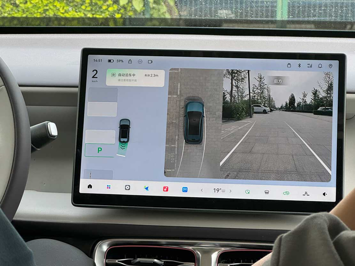 试驾车开启全速自适应巡航和车道居中辅助后,面对其它交通参与者穿插时的加减速表现较为柔和。使用泊车辅助功能时,车辆能较快识别出空闲车位并准确停入。