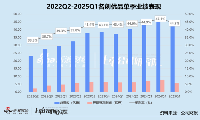 结合往期季报披露数据分析,名创优品本季经调整净利润已基本退回2023年第二季度(2023财年第四季度)同等水平,创下近七个季度内的新低。而值得关注的是,报告期内得益于海外市场和潮玩子品牌TOP TOY的快速发展,公司的毛利同比显著增长21.1%,毛利率实际提升了0.8个百分点至44.2%。